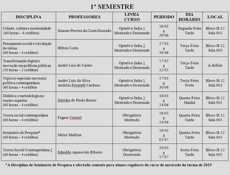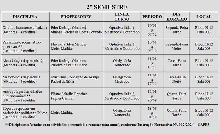 AS AULAS SERÃO MINISTRADAS NOS SEGUINTES HORÁRIOS: